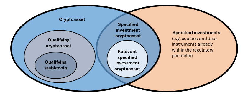 A cryptoasset that is fungible, transferable and not solely a record of value or contractual rights. This includes “qualifying stablecoins,” but it excludes “specified investment cryptoassets” and other instruments that are already regulated (such as electronic money). |